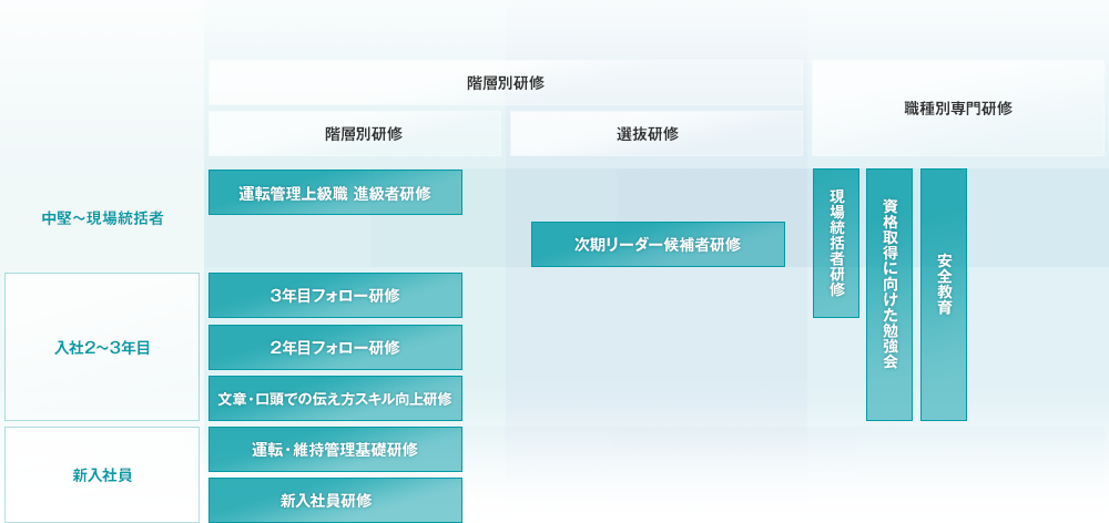 社会人としての成長を総合的に支援していくために教育体系を整備しています。